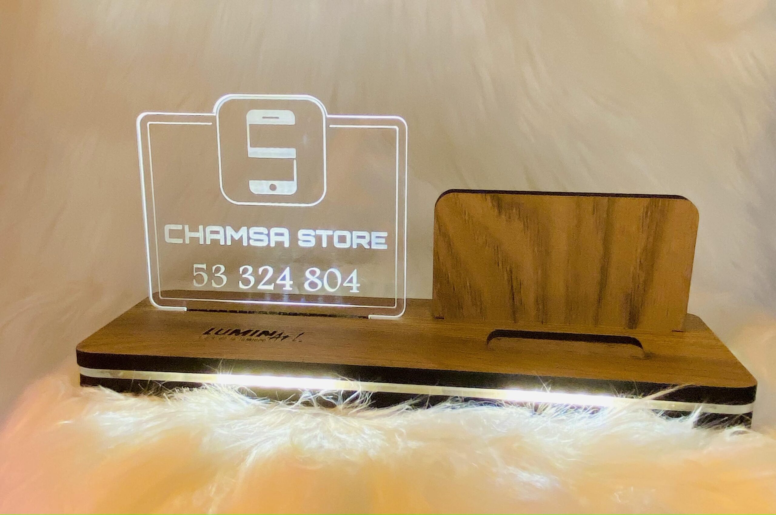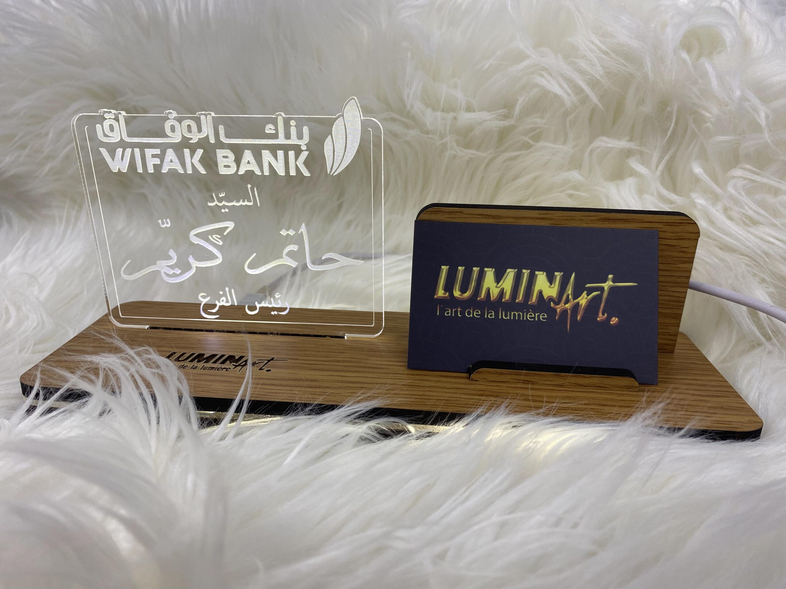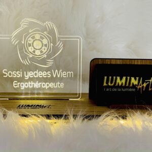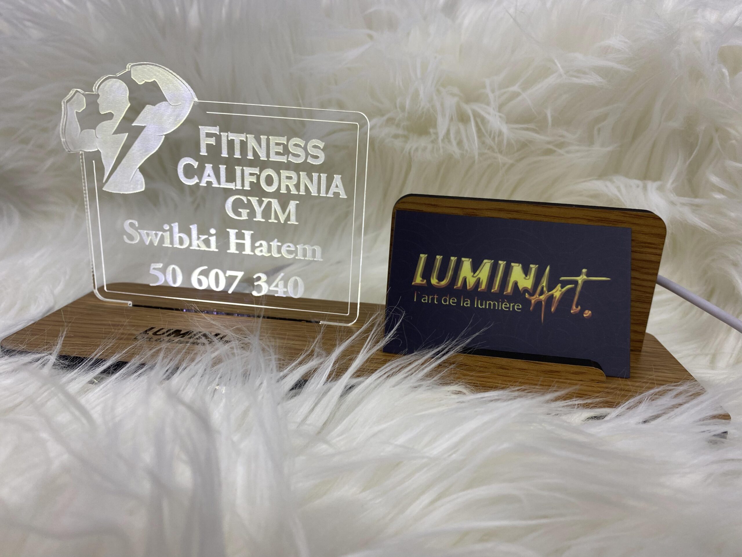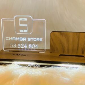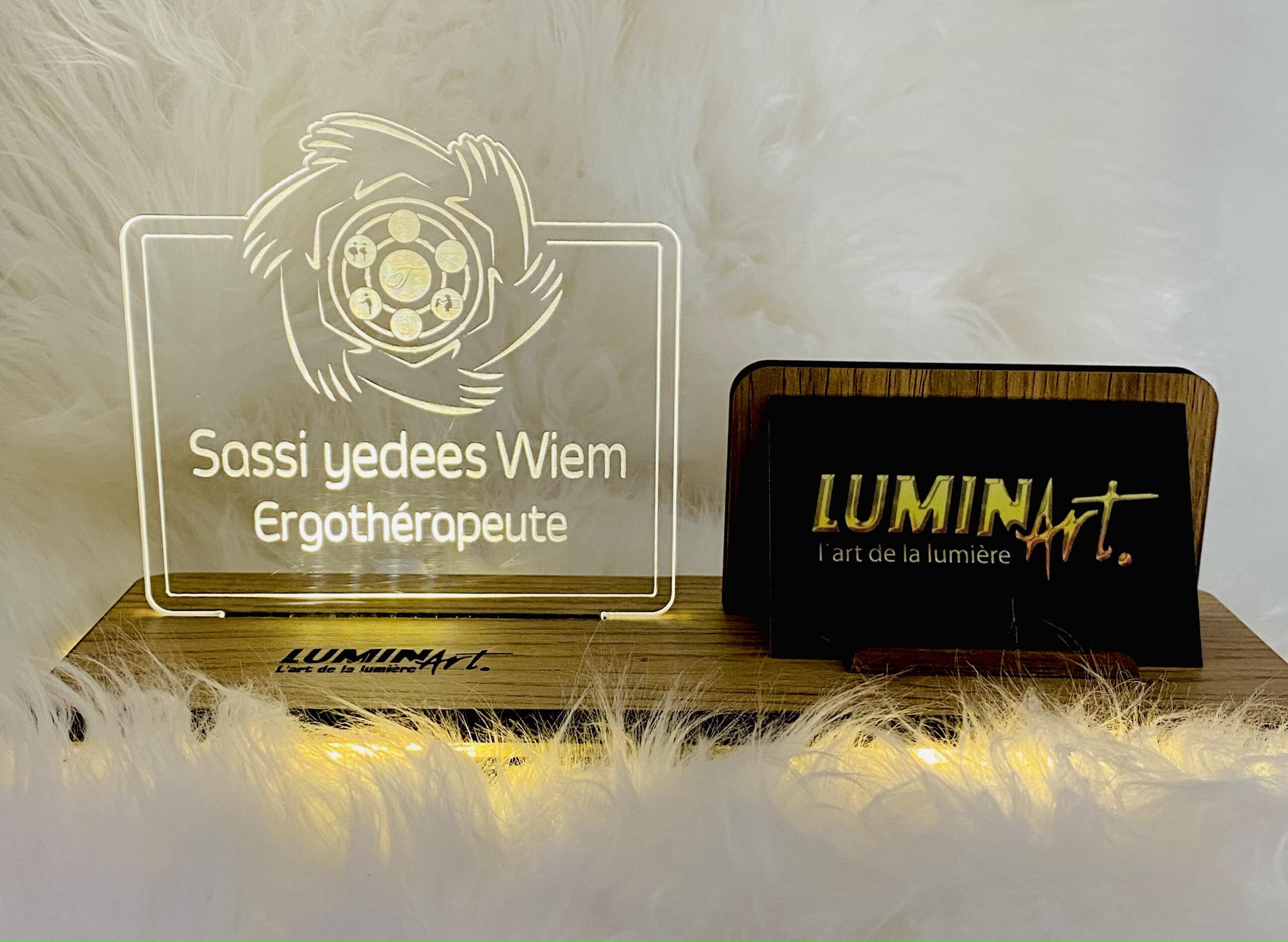 Mettez en valeur votre identité professionnelle avec ce support de carte de visite lumineux, alliant design moderne et personnalisation sur mesure. Conçu en bois et plexiglas LED, il illumine vos informations avec élégance, parfait pour un bureau, une réception ou un cabinet.