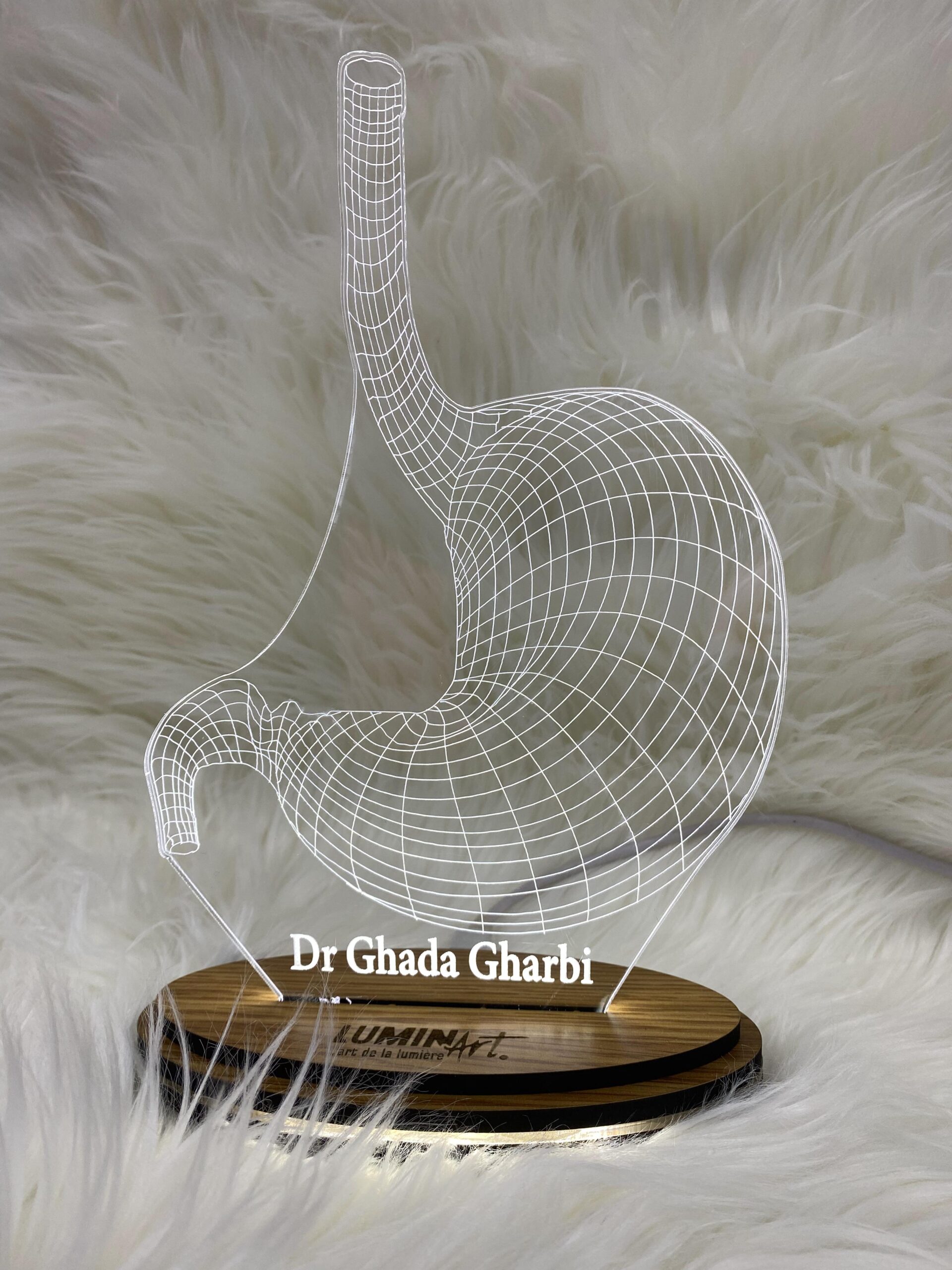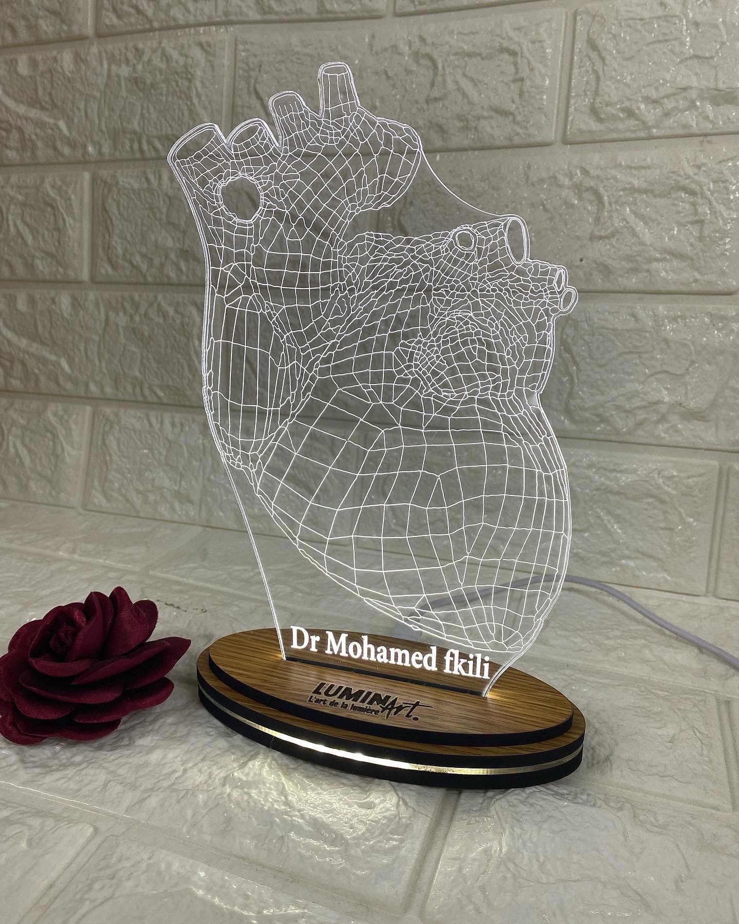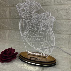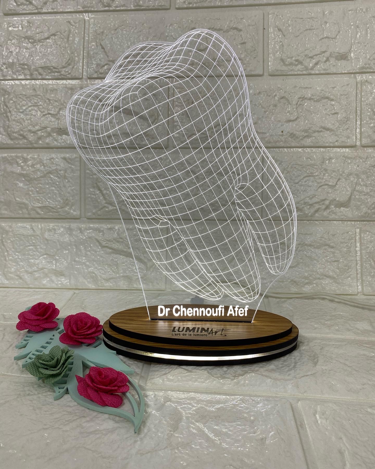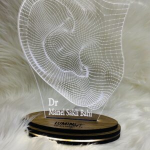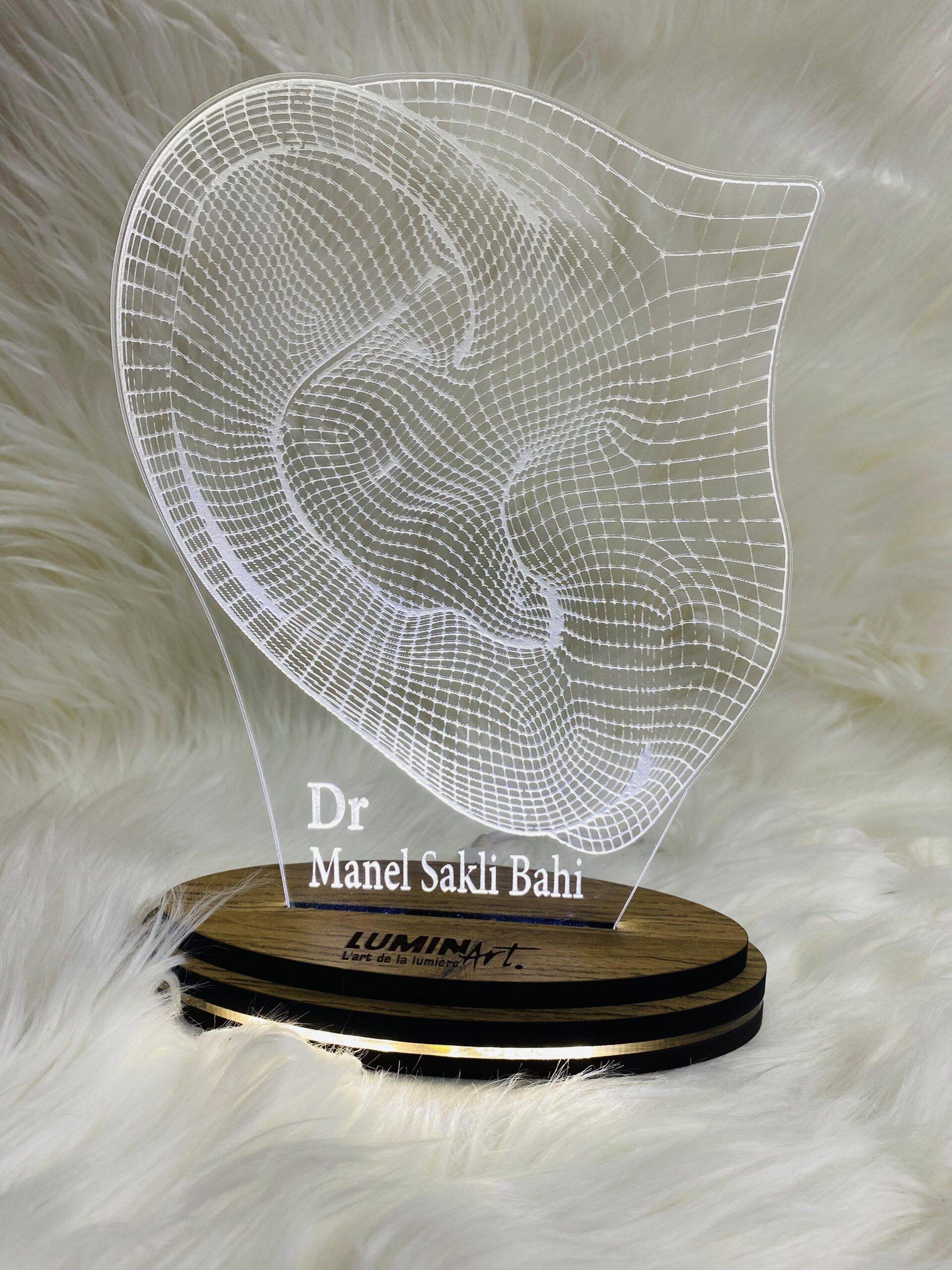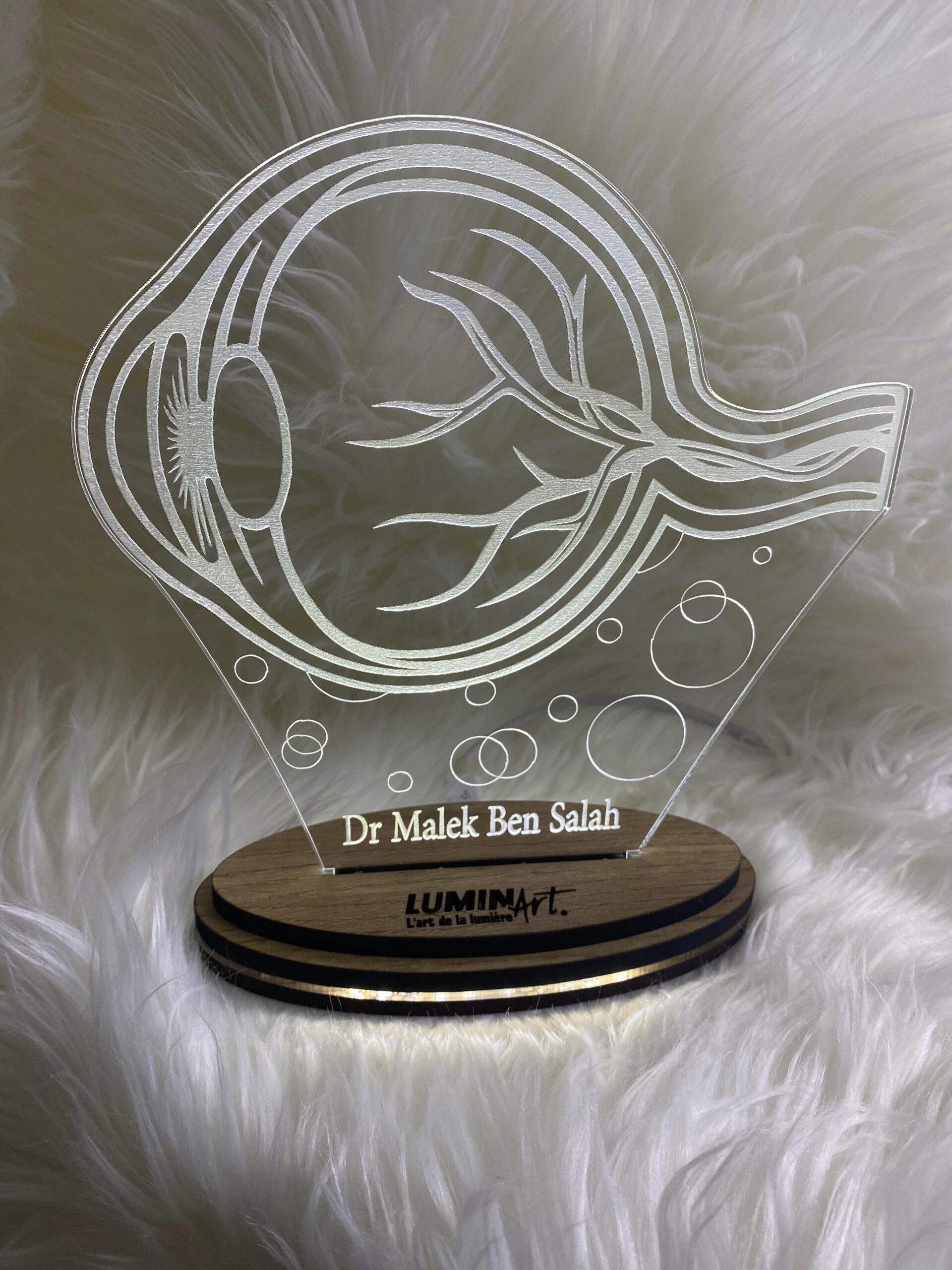 Offrez une touche lumineuse et raffinée à votre bureau avec ce trophée LED personnalisé à votre nom et spécialité. Gravé avec précision sur plexiglas et posé sur une base bois élégante, ce trophée lumineux est idéal pour les professionnels de santé ou tout autre métier souhaitant allier décoration et distinction.
